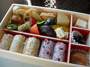五穀米と黒米のご飯だし、胃に優しい精進的なお弁当でした。