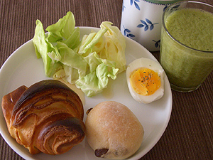 クロワッサンと、堀井和子さんのレーズン入りのプチパンの組み合わせで朝ごはん。