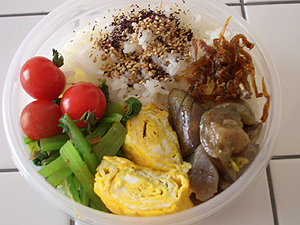 ご飯粒の量を軽めにして、食後眠くならないようなお弁当の量に調整しつつ。