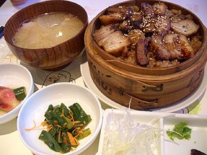 彼は、豚の角煮せいろ丼1300とビール600円。