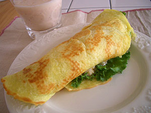 粉の量だけ半分にして、なおかつ卵を入れずに薄めのクレープ状に焼き、