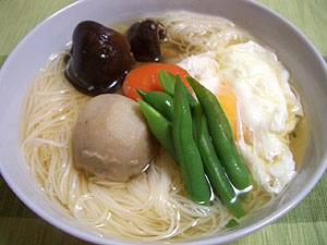 喉の痛みが激しい私のごはんとしましては、にゅうめんのトッピングとして