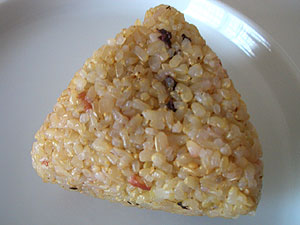 義祖母のつけた梅干+シソを刻んで、玄米ごはんで握りました。