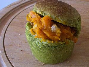 ほうれんそうのパンに、煮物にしていたかぼちゃをマッシュして、