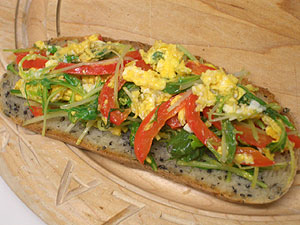 パンのもっちりした食感と水菜のシャキシャキした食感が対照的。
