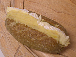 奥は、ミニ春菊フランスパンに、カマンベールチーズと胡桃を挟みました。