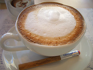 お腹一杯になって大満足し、ゆとりの空間にて、二人してカプチーノを。