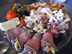 あれこれと盛り合わせの前菜は、これから始まる食事を想ってワクワクしますねえ。