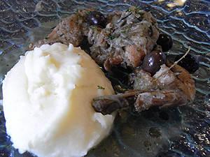 信州産ウサギのオリーブ煮込み。