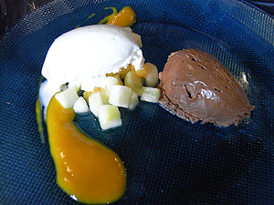 ドルチェは、チョコレートムースと、ヤギミルクのジェラート。