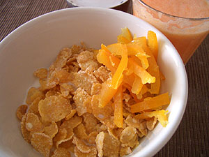 最近シリアルにはドライフルーツと牛乳をかけて食べていました。