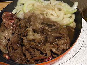 まず牛肉を焼き付けて、砂糖としょうゆをかけて絡めて食べるのだと思っています。