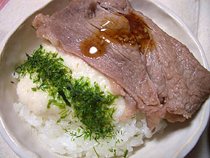 今回載せたのは、お肉をとろろごはんで受けて食べてみようと思ったからなんです。