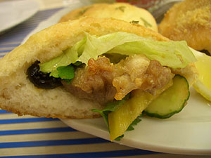 パニーニにチキンや、イタリアンサラダをサンドして。