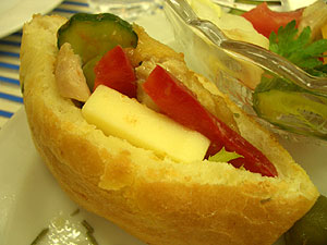 同じく、サラダの違う部分や、チーズとチキンをサンド。