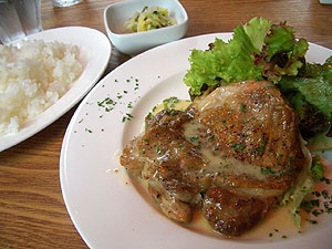 野菜はサニーレタスと、ご飯に添えられたお漬物だったのが残念。