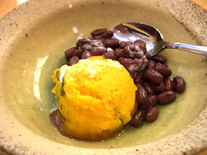 デザートはかぼちゃのマッシュ?とあずき煮。