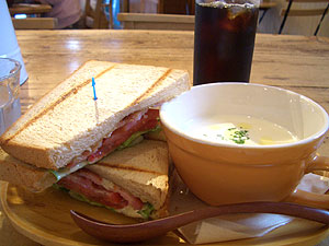 全粒粉のパンで作ったB.L.T.のサンドウィッチのランチ1050円。