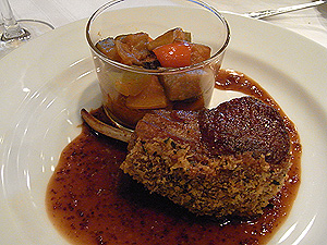 メインには、冒頭の子羊、野菜の煮込みがたっぷり添えられて。