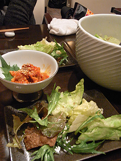 看板メニューのしゃぶしゃぶセットと、チャンジャと、秀久サラダと。