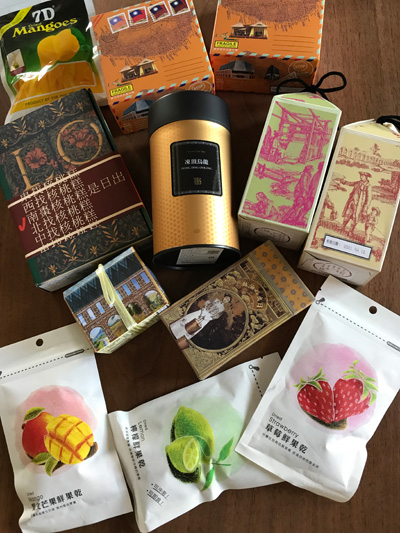 9月に夫が趣味ごとの遠征で出掛けた台湾土産の数々。