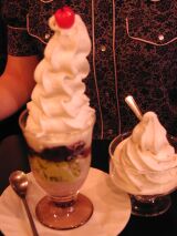 私はおせんべアイス350円、友人は田舎パフェ800円を。
