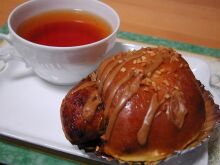 アーモンドクランチロール、紅茶(ストレートティ)