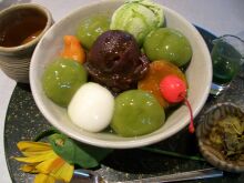 さて、二人ともオーダーしたのは、宇治白玉クリームあんみつ。