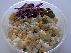 冒頭はおかずが今ひとつない時についつい頼ってしまう、チャーハン弁当。