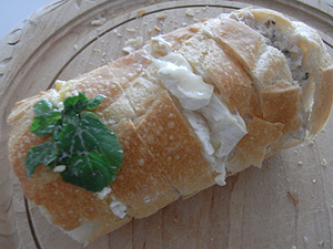 ロワゾー・ド・リヨンのバゲットがふんわりタイプだったので、切れ目をいくつか入れて、