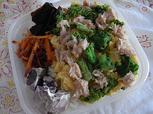 で、こっちは、菜の花とツナと卵のそぼろ弁当的な感じに。