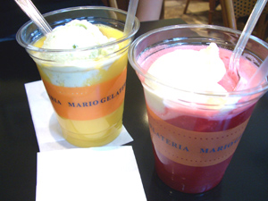 配偶者はマンゴージュースにピスタチオジェラートをそれぞれトッピングしてフロートに。