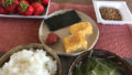 サラダはこの日はわさび菜のみだったかな。エキストラバージンオリーブオイルと酢とガーリックソルトと黒胡椒を挽いて、各自混ぜて食べます。卵焼きのようなオムレツのようなのには、何かを混ぜているようですが、豆もやしかなあ。後日これを書いているのですが、数日経つともう忘れてます。