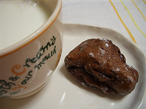 チョコonチョコで粉砂糖が絡まり、全体ではバランスの良い甘さになっています。