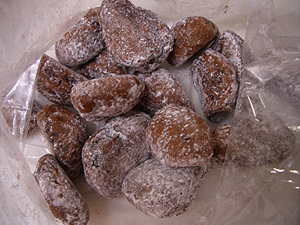 粉砂糖はお持ち帰りで、自宅にてぱふぱふっと絡めます。