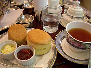 プレーンと紅茶のスコーンがクロテッドクリームといちごジャムと共に味わえます。