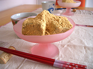 和菓子、と云うことでスーパーの店頭に売りに来ていた黒糖わらび餅にしました。