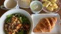 今回も油条の代わりにパンの耳をカリカリにトーストして添えました。このパンの耳はサラダにも散らしてクルトンとしても食べました。