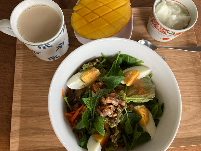 タイトルのものを食べる前には、サラダをしっかりといただきます。ベジファーストは我が家でも完全に定着しております。