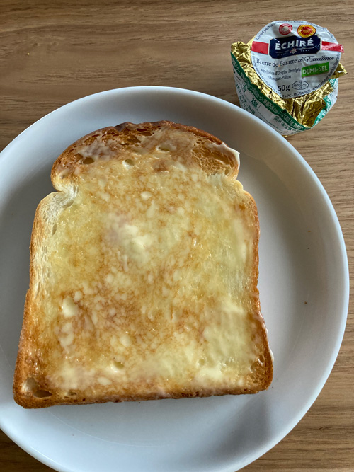 ちょいと奮発して買ったエシレバターを意外にも大胆に塗り、パンを味わいつつもバターも味わう至福のひと時でした。
