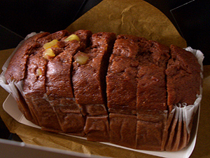 朝ごはん時に一切れ、とてもしっとりしている生地でした。