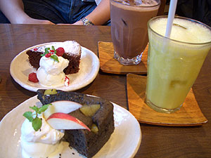 私は黒ゴマと甘栗のバターケーキと、キャベツとパインのフレッシュベジ600円と云う野菜ジュースを。