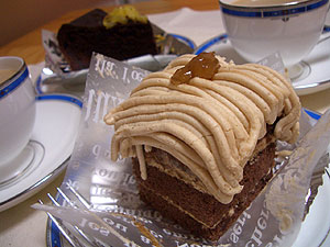 ココアスポンジベースに、洋酒が効いた栗クリームが贅沢で美味しい。