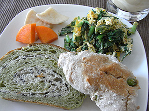 左側は、新茶と黒ゴマのローフ、右側は枝豆とくるみのリュスティックです。