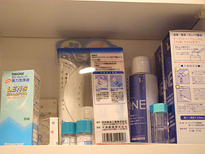 洗面所の棚の一つは、今までこんなにコンタクト用品が占拠していました。