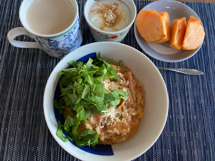 後から考えたら、柿はできるだけ夫に出して、私はほかのを食べておけばよかったかなあと思いました。多分何度も書いているかもだけど、柿を食べるなら、干し柿か、おそろしくトロトロになっている状態かのどちらかであればとても好きで、普通に食べるなら柔らかくないシャキッとした状態の柿であればよいと思っているので、広く柿を愛する人に譲った方がいいだろうなあという考えなので。