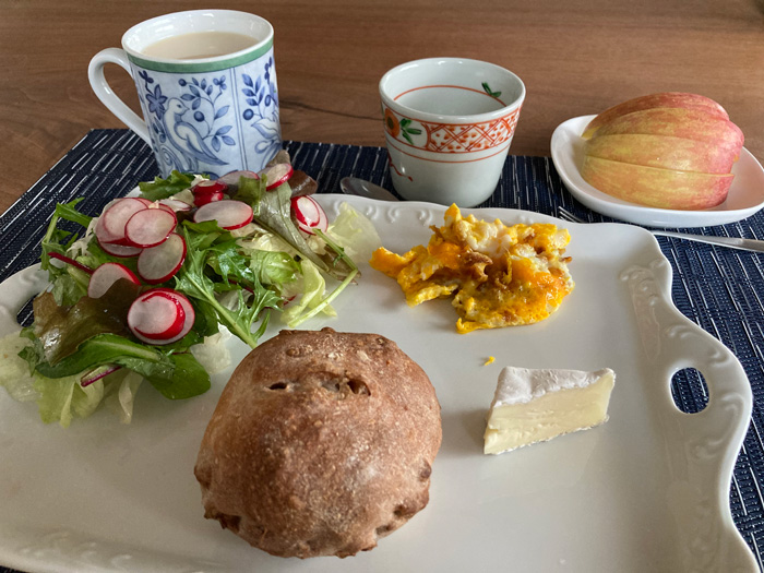 ヨーグルトは今朝も量が若干少なかったので、斜めから撮るとまるで器だけ置いているかのようで、なんだか違和感があるのですが、ちょっとは食べています。