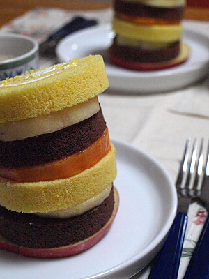 食べる時には、2,3段くらいを一緒にナイフで切り分け、