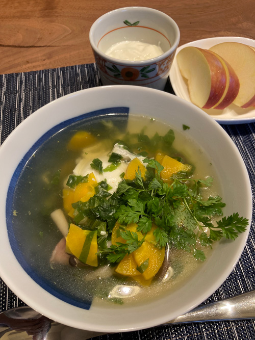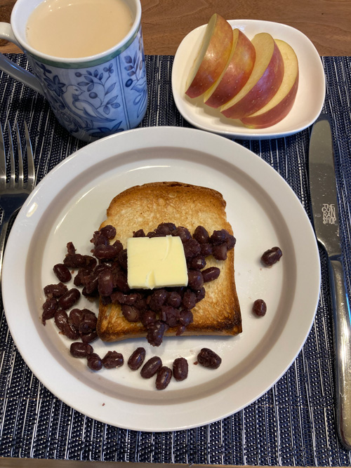 黄人参の巣篭りスープと小倉トースト 2021.01.12 夫が買ってきた野菜の色々、チャービルと黄人参で朝のスープを。身体を温めた後は、自家製パンと自家製小豆煮で小倉トースト。 餡というよりは、小豆って感じです。今度はもう少し餡ぽくできるといいな。