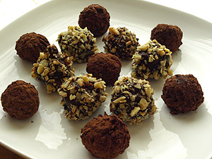 ココアパウダーもしくはくるみにまぶして出来上がり。